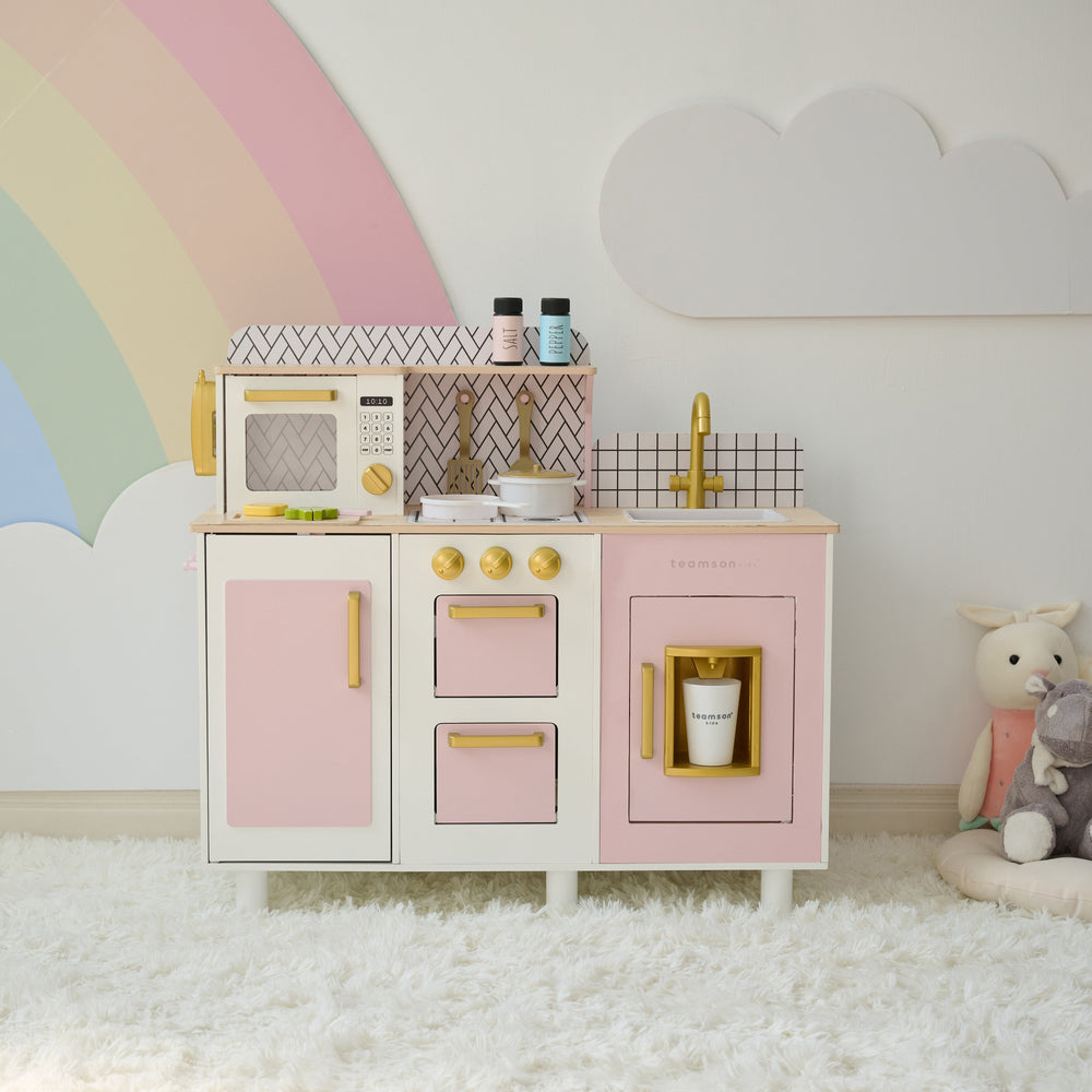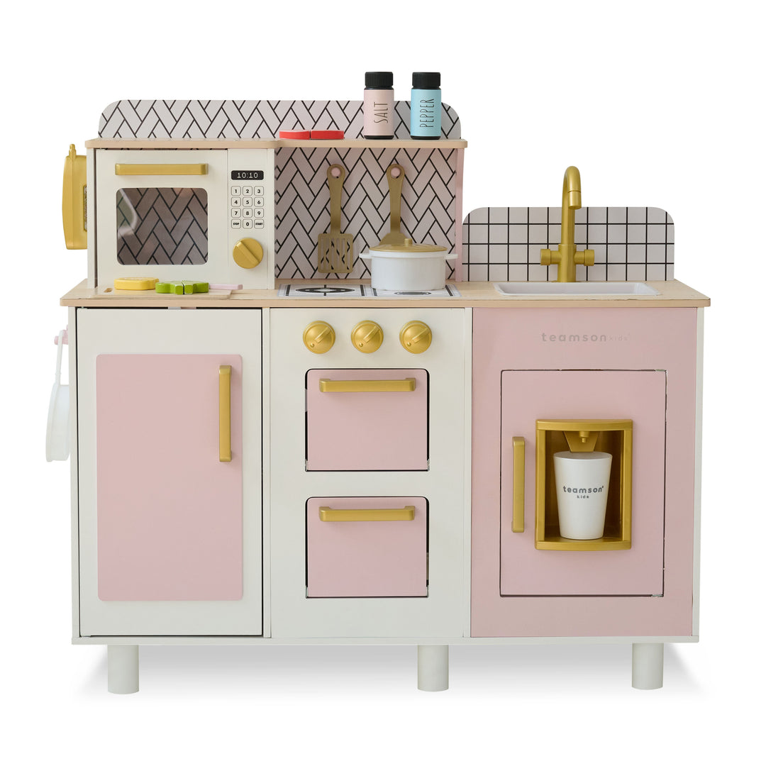Wooden Play Kitchen with 21 Accessories, Pink - Little Chef Savannah by Teamson Kids