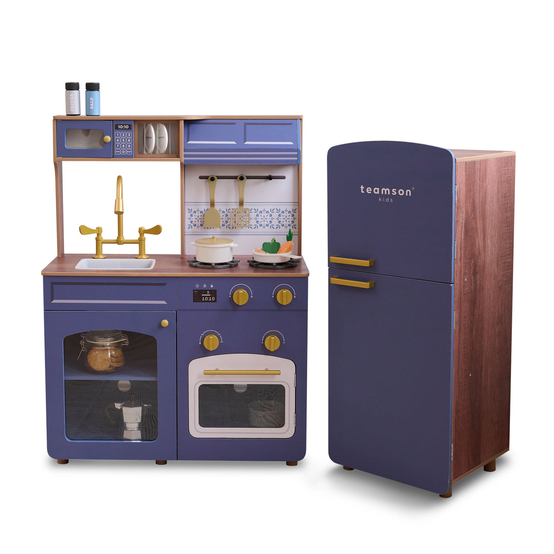 Teamson Kids Little Chef Atlanta Modular Play Kitchen with Accessories, Blue/Gold